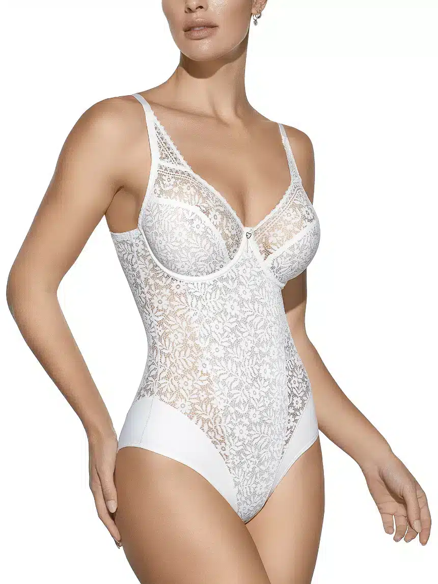 Body redutor rendado com aro sem copa. Fabricado em tecido extra macio e elástico, para um conforto extraordinário. Uma peça que combina conforto e elegância na perfeição.