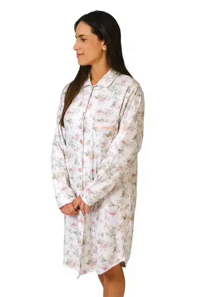 Camisa de dormir para senhora em algodão cardado. Com abertura frontal total com botões, para maior praticidade. Tenha o conforto e elegância numa só peça. Composição: 50% algodão/50% poliéster