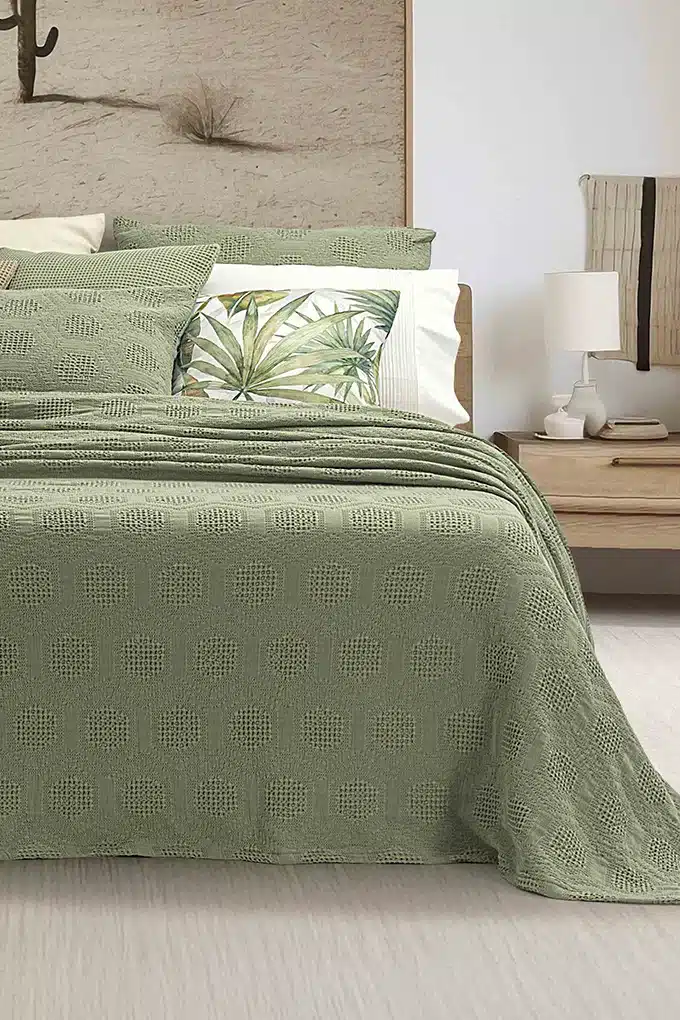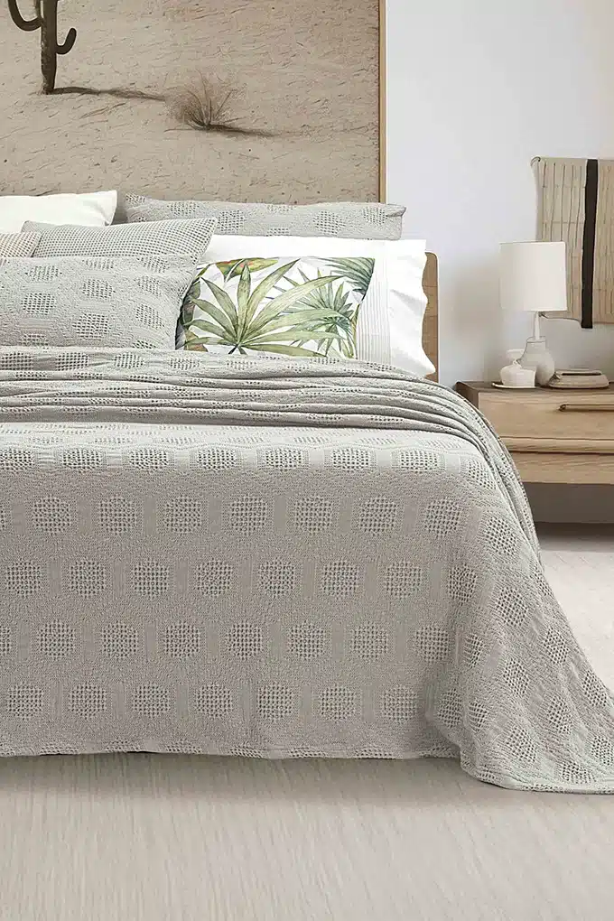 Colcha fabricada em algodão jacquard combina elegância e durabilidade para oferecer uma experiência de descanso premium.